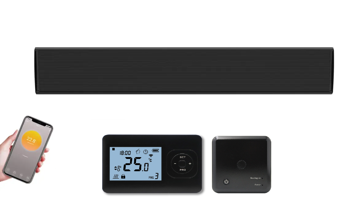 De Quality Heating Thermolux infrarood terrasheater is verkrijgbaar in verschillende vermogens en is ideaal voor gebruik in de tuin als terrasverwarming. Deze heater kan zowel aan de wand als aan het plafond worden gemonteerd, waardoor het veelzijdig inzetbaar is in diverse buitenomstandigheden. Na het inschakelen straalt de heater al binnen enkele seconden comfortabele warmte uit, zonder dat er ongewenst licht wordt geproduceerd. De Thermolux wordt geleverd met opbouw ontvanger en draadloze thermostaat.
