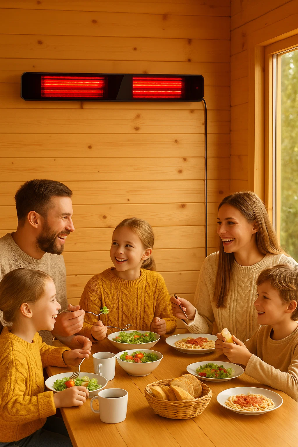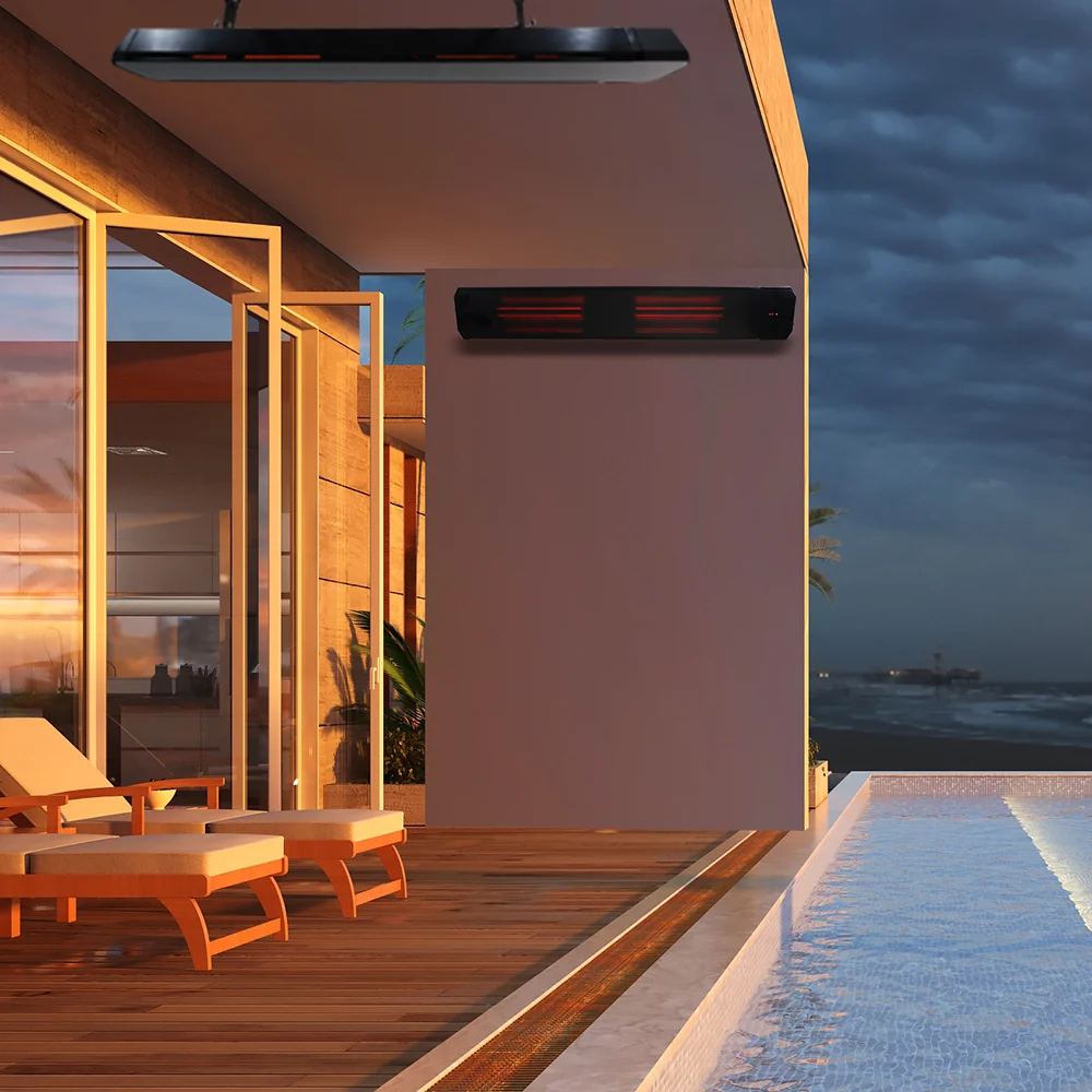 De heater is verkrijgbaar in 3 verschillende uitvoeringen,1600W, 2200W en 3200W en wordt geleverd inclusief handleiding, montageset, afstandbediening en is voorzien van een ingebouwde thermostaat regeling. Montage voor aan de wand en aan het plafond.