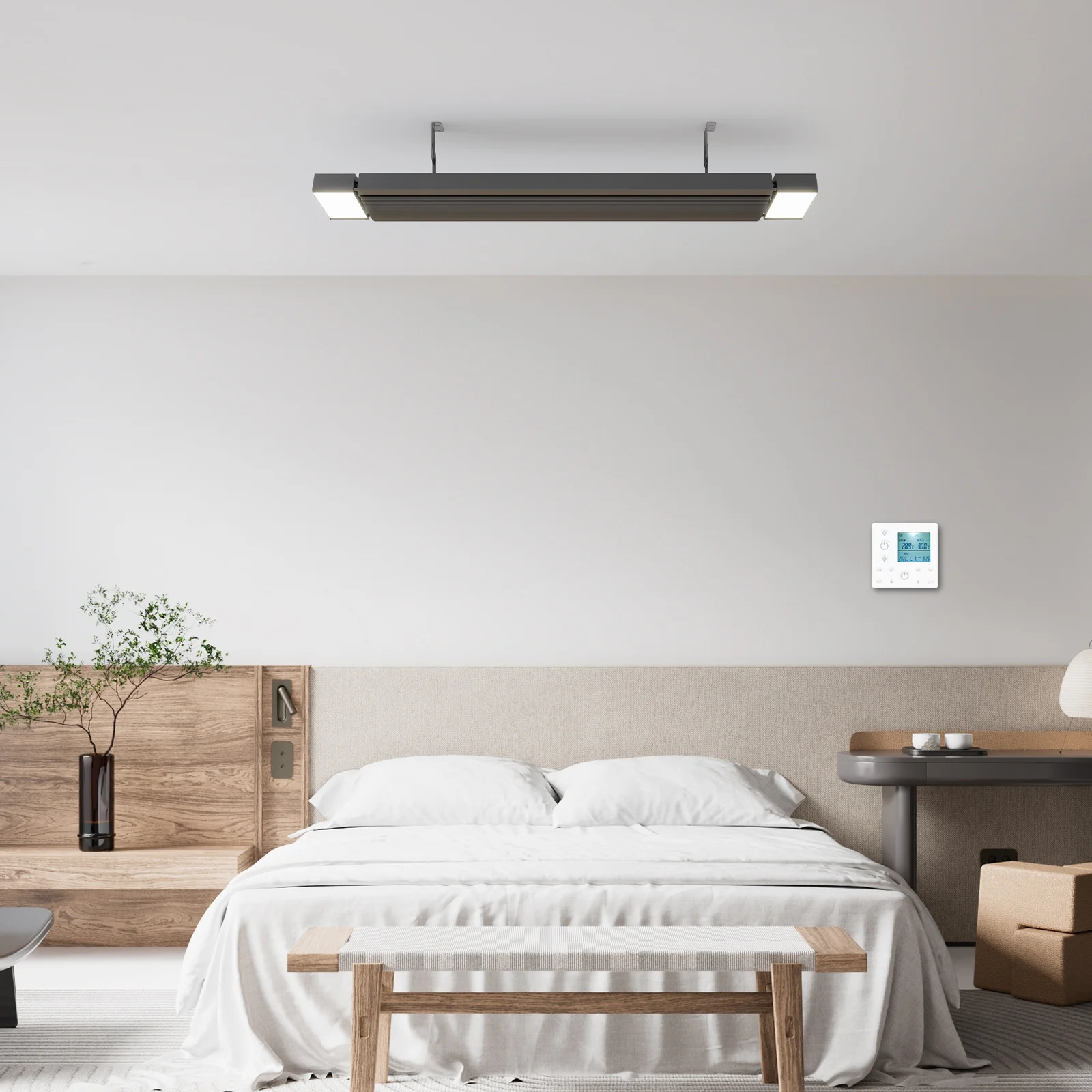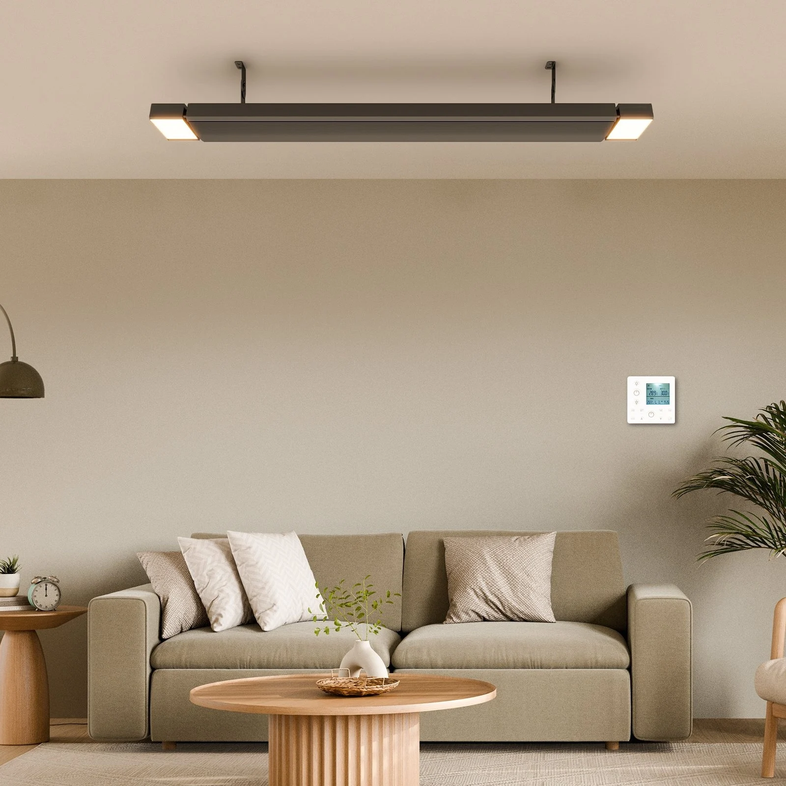 De Glowbeam beschikt over een ingebouwde ontvanger en afstandsbediening voor zowel verwarming als verlichting. Er is geen wifi nodig, wat zorgt voor eenvoudige installatie en betrouwbare bediening.