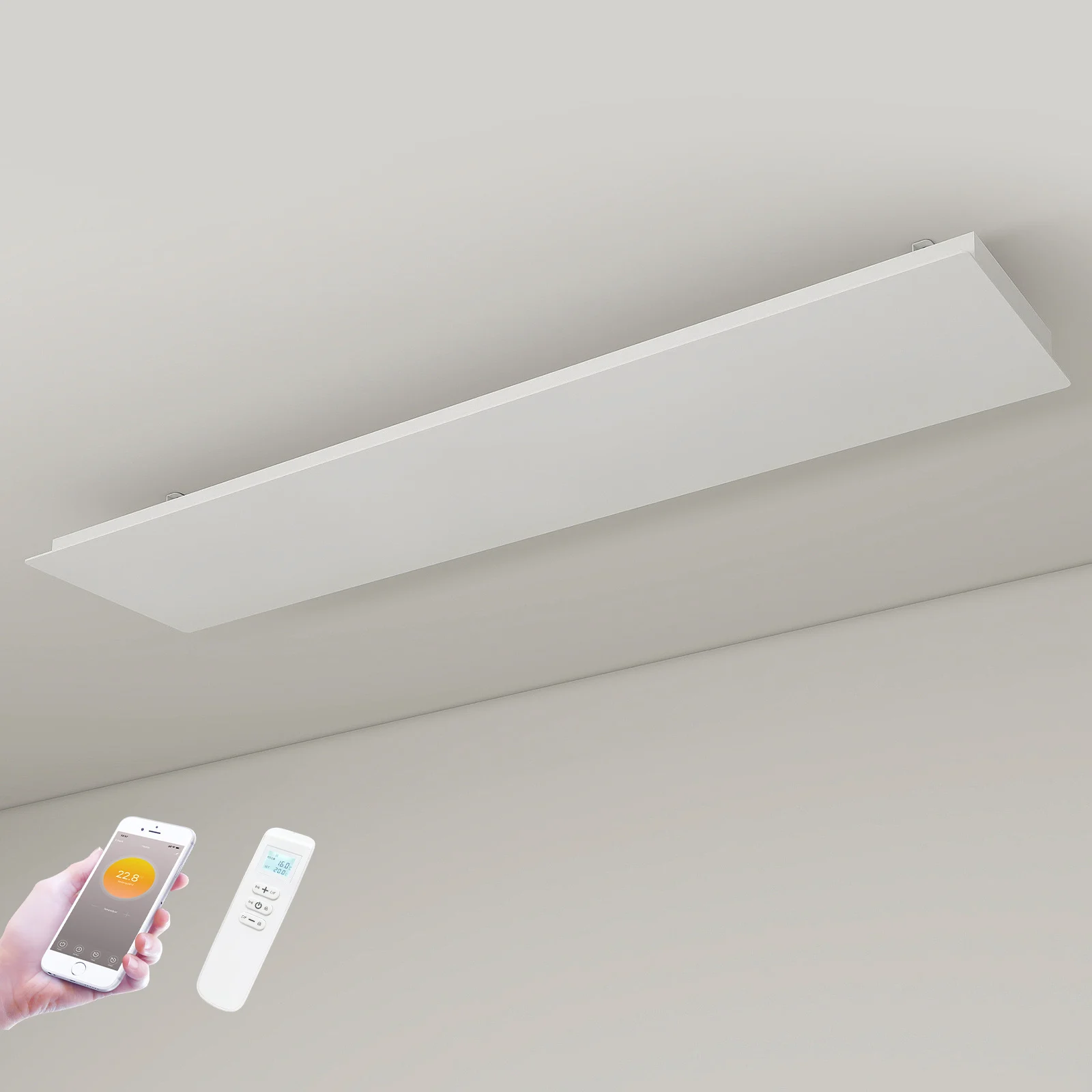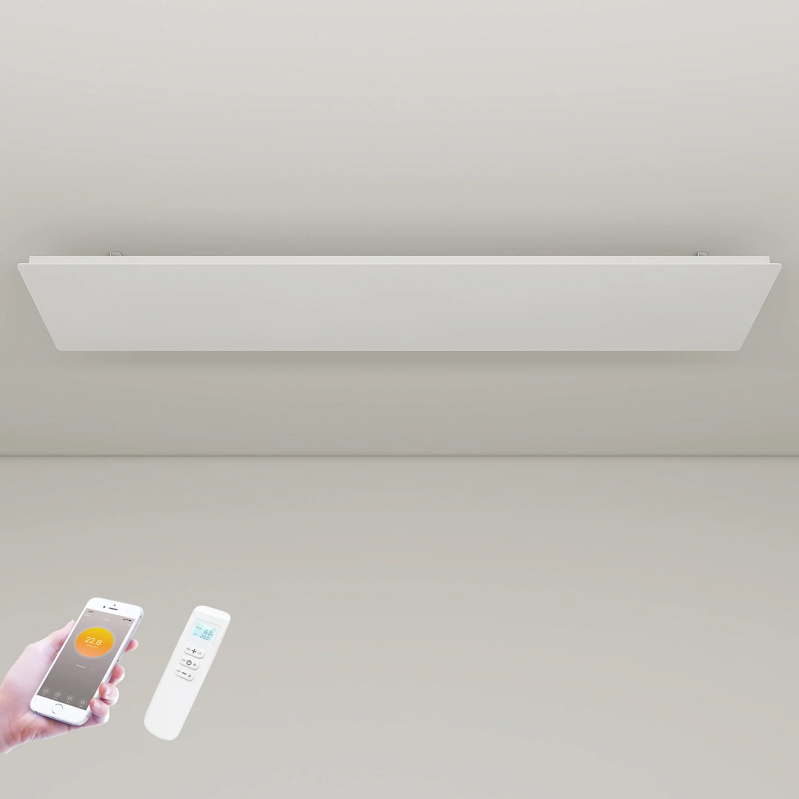 De temperatuur is eenvoudig te bedienen met de bijgeleverde afstandsbediening. Hiermee kunt u het paneel aan- en uitschakelen en de gewenste temperatuur instellen. Voor meer geavanceerde instellingen is het paneel ook te koppelen aan een app.