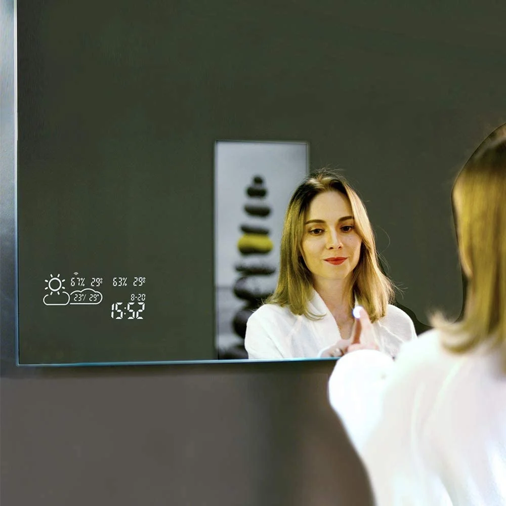 Nieuw de smart spiegel infrarood voorzien van sfeer led verlichting, tijd, datum is voorzien van een prachtig design en is ontwikkeld voor in de badkamer of woonkamer. Deze infrarood verwarming in design uitvoering is simpel te monteren aan de wand met de bijgeleverde onzichtbare bevestigingsbeugel. Led verlichting kan apart Aan/Uit worden geschakeld, met de schakelaar soft touch aan de oppervlakte.